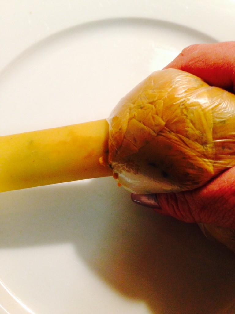 The trick to successfully filling cannelloni shells is to hold the freezer bag close to the tube and push small amounts in at a time.