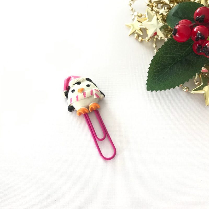 A cute penguin with a pink cap is a fun break from the traditional Christmas styles.